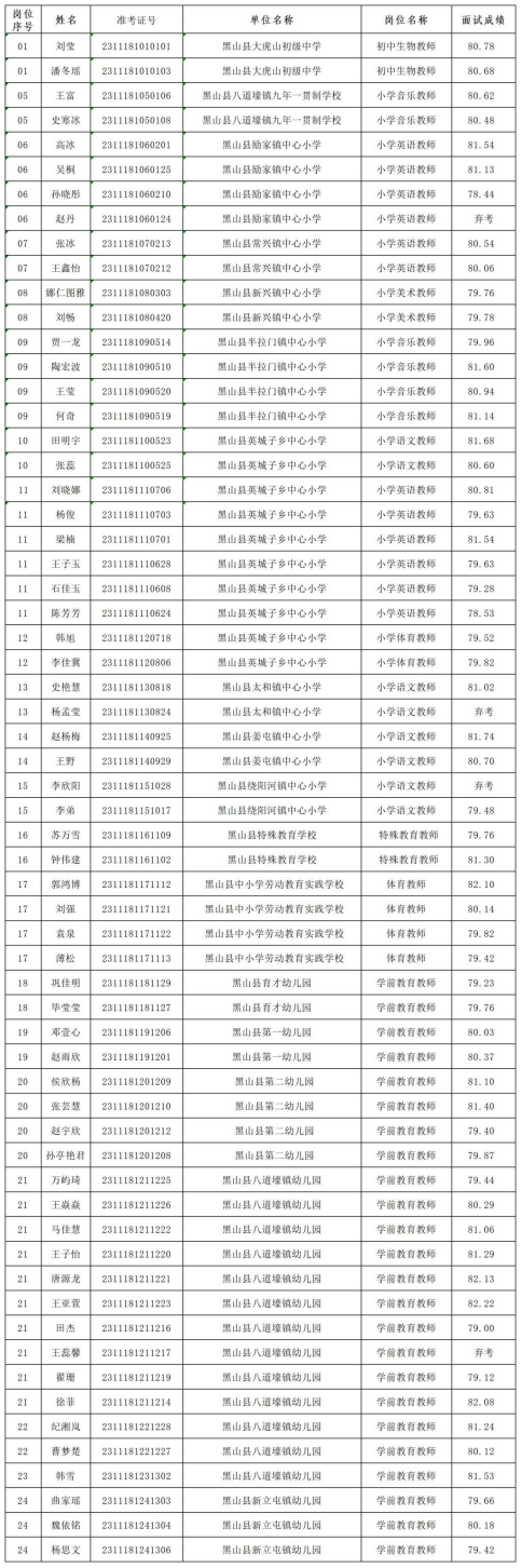 附件:黑山縣教育局所屬學(xué)校2023年面向社會(huì)公開招聘事業(yè)單位工作人員(教師)面試成績