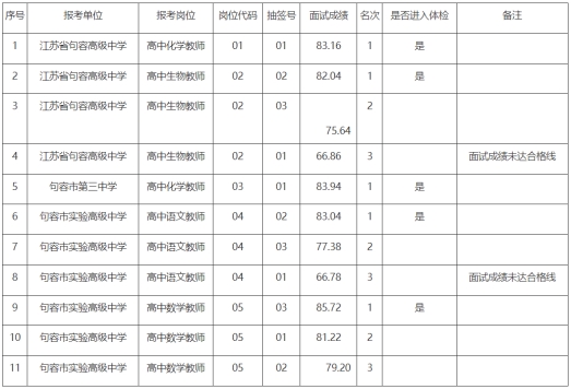 根據(jù)《句容市教育局所屬學(xué)校2024年第二批校園公開招聘教師公告》(鎮(zhèn)句事招公告〔2023〕11號),現(xiàn)將面試成績予以公布,如有異議請與句容市教育局(0511—87310516)聯(lián)系。公示時(shí)間為2023年11月29日至12月1日。