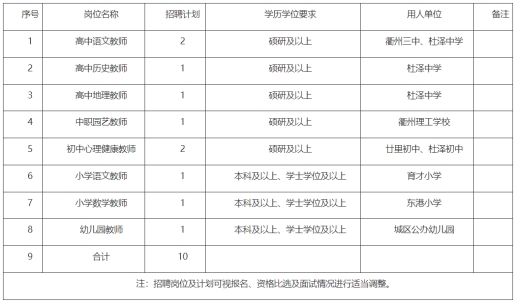 本招聘公告由衢江區(qū)教育局、衢江區(qū)人力社保局負責解釋,未盡事宜由衢江區(qū)教育局、衢江區(qū)人力社保局研究決定。