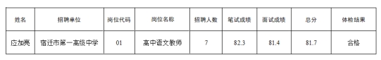 2023年宿遷市第一高級(jí)中學(xué)(宿遷市教育局直屬學(xué)校)面向社會(huì)公開招聘教師體檢工作(第三批次)已經(jīng)結(jié)束,現(xiàn)將擬聘用人員名單(三)予以公示。