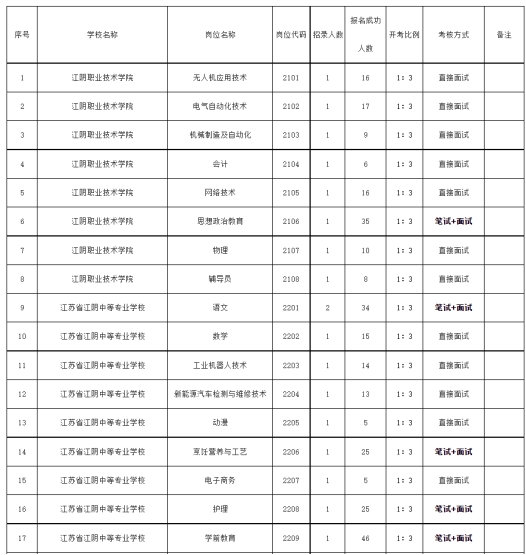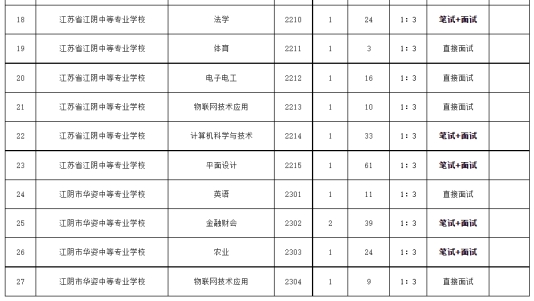 考生范圍:筆試入圍考生(預計于12月17日18時前在江陰教育網(wǎng)http://www.jsjyjy.net公布)和上表中考核方式為“直接面試”崗位的考生。