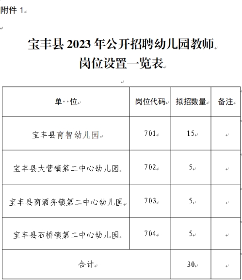 本次全縣面向社會(huì)公開(kāi)招聘幼兒園教師30名,招聘崗位見(jiàn)附件1。