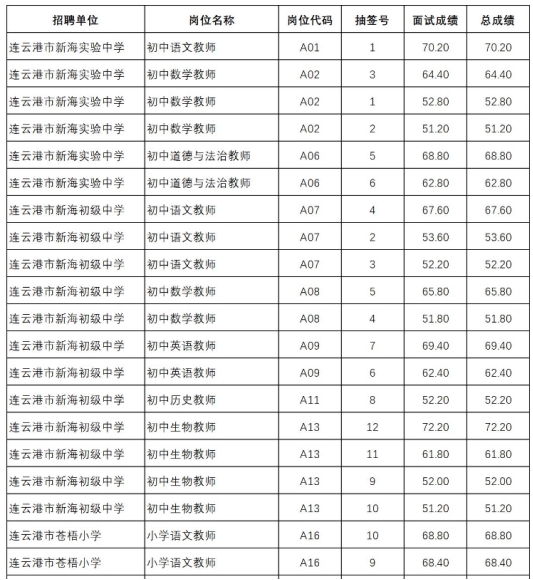 連云港市教育局直屬義務(wù)教育學(xué)校2023年赴高校公開(kāi)招聘編制內(nèi)高層次人才(第二站)考試工作已經(jīng)結(jié)束,F(xiàn)將成績(jī)公布如下: