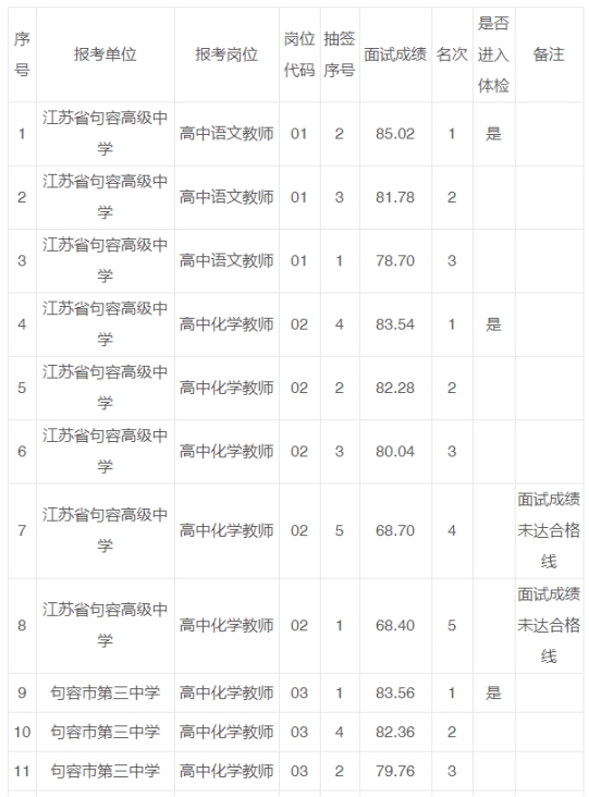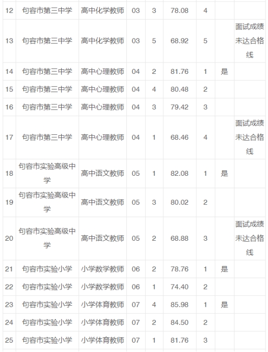 根據(jù)《句容市教育局所屬學(xué)校2024年第三批校園公開招聘教師公告》(鎮(zhèn)句事招公告〔2023〕12號(hào)),現(xiàn)將面試成績予以公布,如有異議請(qǐng)與句容市教育局(0511—87310516)聯(lián)系。公示時(shí)間為2024年1月4日至1月8日。