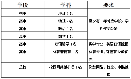 為此,學校本著“事業(yè)留人、感情留人、待遇留人”的管理理念,為建設一支高素質、高水平的教職工隊伍,特向社會公開招聘,廣納賢才,有關招聘事項公告如下: