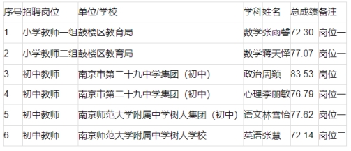 根據(jù)《南京市鼓樓區(qū)教育局所屬學校2023年11月公開招聘教師公告》(寧鼓事招公告〔2023〕2號)精神,經(jīng)體檢考察,因考生放棄等原因,在該崗位的面試合格人員中,按總成績從高分到低分依次遞補,遞補體檢、考察名單公布如下: