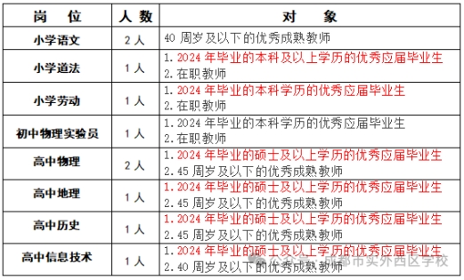 7.小學(xué)教師年齡40周歲及以下,初、高中教師45周歲及以下(特別優(yōu)秀者可適當(dāng)放寬)。