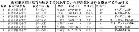 詳見(jiàn)《2024年公開(kāi)招聘新教師遞補(bǔ)資格復(fù)審名單及排名》。