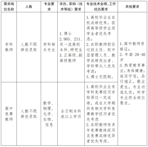 (二)招聘計(jì)劃:我校長期面向社會(huì)招聘各學(xué)科、各專業(yè)領(lǐng)域的博士及優(yōu)秀教育人才。