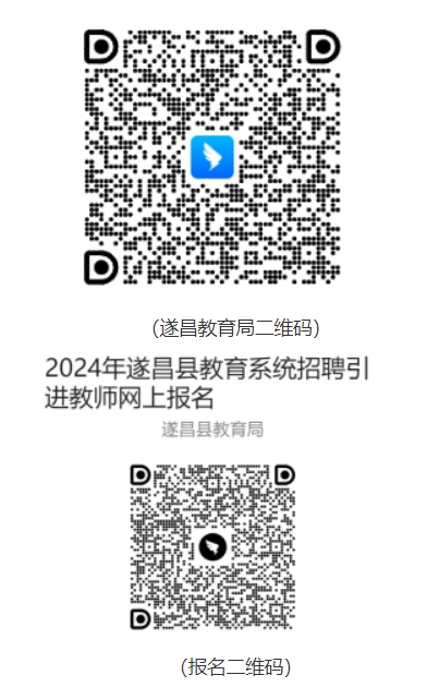 報名方式:報考人員通過手機軟件市場(手機端)或者釘釘網(wǎng)站https://www.dingtalk.com/(電腦客戶端)下載安裝并注冊釘釘軟件,通過釘釘掃一掃功能掃描下方“遂昌教育局二維碼”加入遂昌教育局,再通過釘釘掃一掃功能掃描“報名二維碼”后進行報名信息填報,逾期(系統(tǒng)自動關(guān)閉)不再受理注冊及報名。