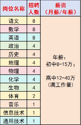 4、學(xué)校提供具有較強(qiáng)競爭力的薪酬福利待遇,高中年薪12--40萬(滿工作量),每年根據(jù)考核提供合理的晉升通道。特殊人才,薪資面談!