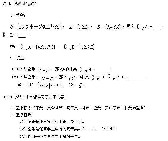 高中數(shù)學教案:高一數(shù)學《子集、全集、補集 》教案模板(2)