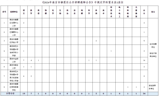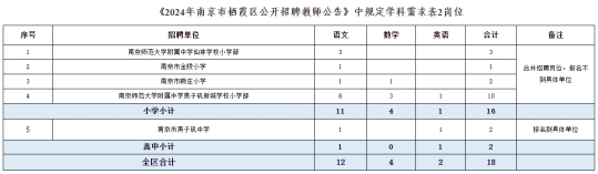 《2024年南京市棲霞區(qū)公開招聘教師公告》中規(guī)定學(xué)科需求表1崗位
