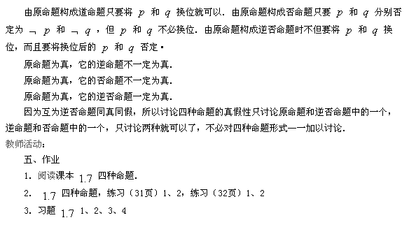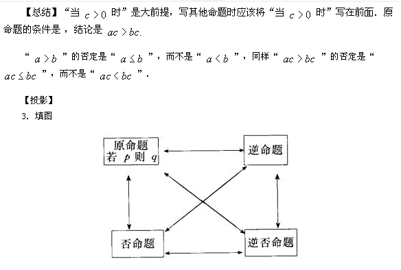 (5)通過對(duì)四種命題之間關(guān)系的學(xué)習(xí),培養(yǎng)學(xué)生邏輯推理能力;