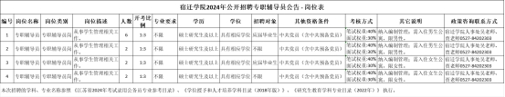 宿遷學(xué)院是省教育廳主管的全額撥款事業(yè)單位,位于江蘇省宿遷市黃河南路399號。為更好地選拔優(yōu)秀適崗人才,充實人才隊伍,優(yōu)化師資結(jié)構(gòu),宿遷學(xué)院現(xiàn)面向社會公開招聘優(yōu)秀專職輔導(dǎo)員。根據(jù)《江蘇省事業(yè)單位公開招聘人員辦法》等規(guī)定,現(xiàn)將有關(guān)事項公告如下: