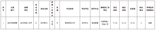 根據(jù)《2023年徐州市教育局直屬學校面向社會公開招聘教師公告》的有關(guān)要求,以下同志經(jīng)招聘單位及其主管部門考察合格,擬聘用,現(xiàn)予以公示(公示時間2024年3月5日-2024年3月13日)。
