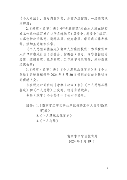2024年關(guān)于南京市江寧區(qū)公開招聘教師體檢與考察(政審)的通知