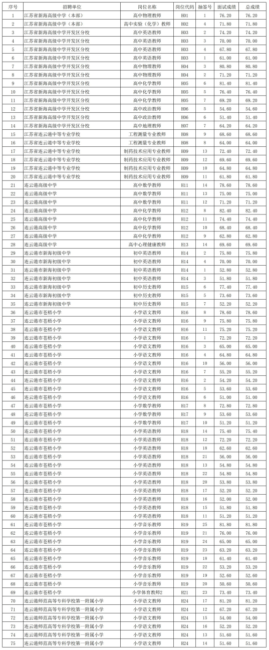 連云港市教育局直屬學(xué)校2024年春季赴高校公開招聘編制內(nèi)高層次人才考試工作已經(jīng)結(jié)束,F(xiàn)將成績(jī)公布如下: