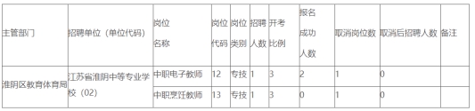 2024年淮安市淮陰區(qū)公開招聘教師報名工作已結(jié)束。因部分崗位(詳見下表)符合報名條件人數(shù)未達到《2024年淮安市淮陰區(qū)公開招聘教師公告》規(guī)定的開考比例,現(xiàn)根據(jù)《2024年淮安市淮陰區(qū)公開招聘教師公告》的規(guī)定,對未達到開考比例的崗位招聘計劃進行取消。現(xiàn)將崗位取消崗位公告如下: