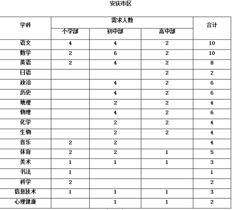應(yīng)聘者將個(gè)人簡歷、身份證、畢業(yè)證書、職稱證書、資格證書、獲獎(jiǎng)證書等復(fù)印件及近照一張裝訂成冊(cè)函寄安慶市外國語學(xué)校人事部,經(jīng)初審合格后通知面試、試教。來信請(qǐng)?jiān)谛欧庾⒚鳌皯?yīng)聘材料”,材料概不退還。