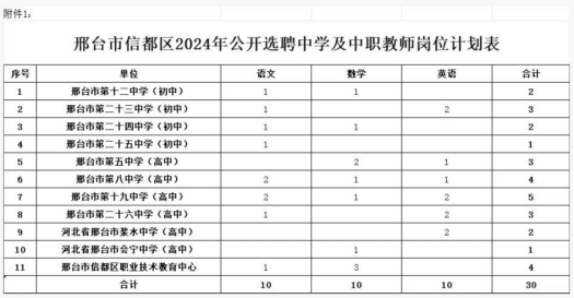 1.《邢臺市信都區(qū)2024年公開選聘中學(xué)及中職教師崗位計(jì)劃表》