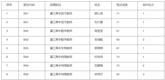 根據(jù)《響水縣灌江高級(jí)中學(xué)2024年赴湖南師范大學(xué)校園招聘教師公告》精神,經(jīng)筆試,現(xiàn)將響水縣灌江高級(jí)中學(xué)2024年赴湖南師范大學(xué)校園招聘教師擬進(jìn)入面試人員成績及名單予以公布。