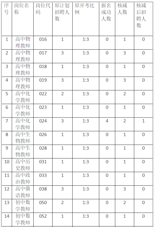 根據(jù)《睢寧縣面向2024年畢業(yè)生公開招聘編制教師公告》的規(guī)定,結(jié)合報(bào)名實(shí)際情況,現(xiàn)將各崗位報(bào)名人數(shù)未達(dá)到開考比例的予以核減或取消。具體情況如下: