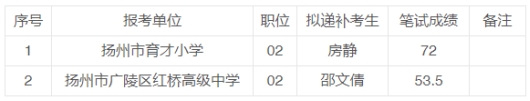 “揚(yáng)州市育才小學(xué)”01職位存在同分并列,無需遞補(bǔ)。