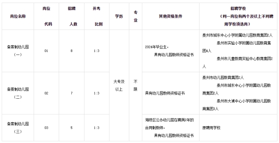 附件:泰州市海陵區(qū)2024年公開招聘幼兒園備案制教師崗位表