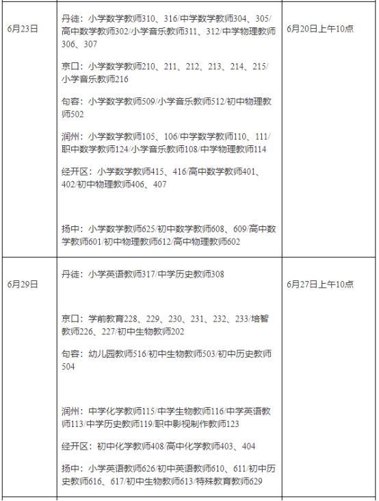 2024年揚(yáng)中市、句容市、京口區(qū)、潤州區(qū)、丹徒區(qū)、鎮(zhèn)江經(jīng)開區(qū)六個轄市區(qū)教育系統(tǒng)公開招聘教師和校醫(yī)集中面試將于2024年6月9日-7月6日分期分批舉行。為方便考生復(fù)習(xí)迎考,現(xiàn)就面試有關(guān)事項通告如下: