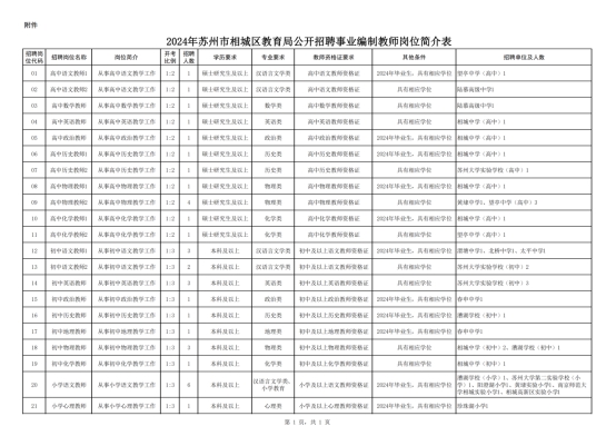附件:2024年蘇州市相城區(qū)教育局公開(kāi)招聘事業(yè)編制教師崗位簡(jiǎn)介表