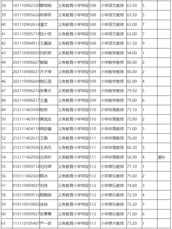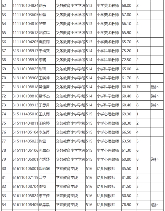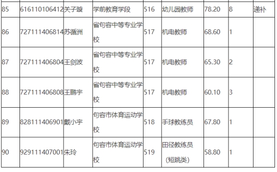 根據(jù)《2024年句容市教育系統(tǒng)部分事業(yè)單位公開(kāi)招聘教師公告》(鎮(zhèn)句事招公告〔2024〕3號(hào)),以下考生通過(guò)了資格復(fù)審,入圍下一輪測(cè)試,現(xiàn)予以公示。面試于6月9日-7月6日分期分批舉行。請(qǐng)通過(guò)資格復(fù)審的考生根據(jù)《2024年揚(yáng)中市、句容市、京口區(qū)、潤(rùn)州區(qū)、丹徒區(qū)、鎮(zhèn)江經(jīng)開(kāi)區(qū)公開(kāi)招聘教師和校醫(yī)集中面試通告》http://hrss.zhenjiang.gov.cn/hrss/kssydwkszl/202405/7a9e902926db47c0ad3078dad8242ec6.shtml)規(guī)定的時(shí)間在鎮(zhèn)江市人事考試考工服務(wù)平臺(tái)(http://hrss.zhenjiang.gov.cn/ks/)“準(zhǔn)考證打印”欄目?jī)?nèi)打印面試通知單,并完成面試?yán)U費(fèi)。具體考試日期、報(bào)到時(shí)間和地點(diǎn)以面試通知單內(nèi)容為準(zhǔn)。