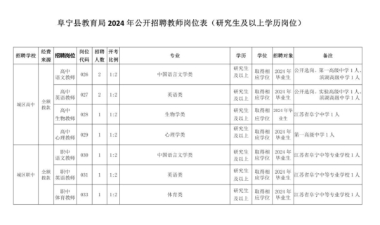 附件1:阜寧縣教育局2024年公開招聘教師崗位表.