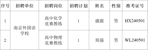 南京外國語學校2024年5月公開招聘高層次人才、緊缺人才資格復審考生名單
