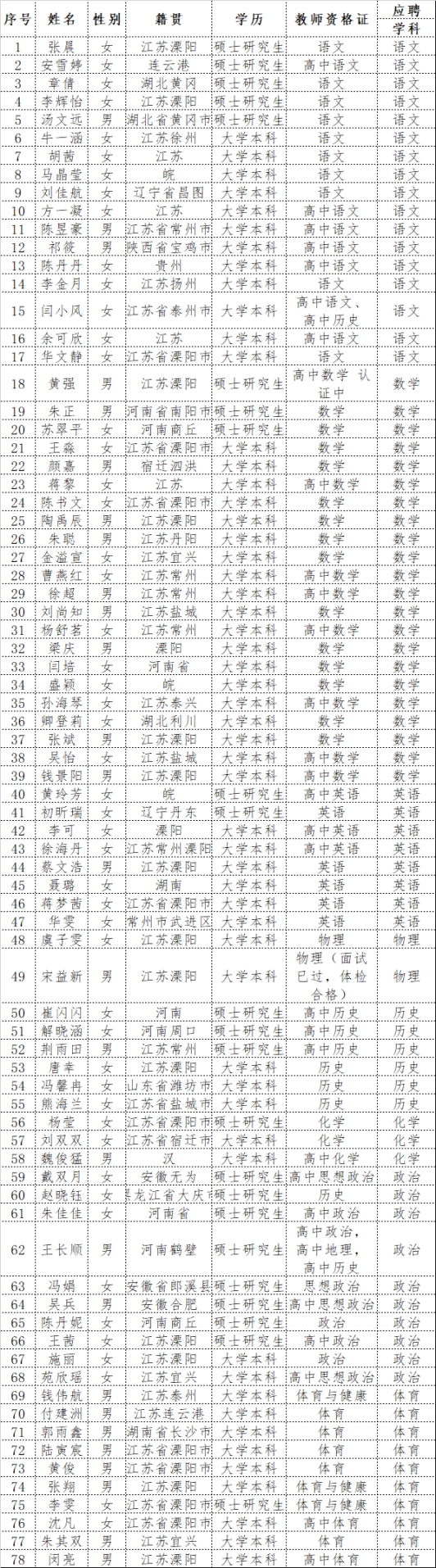 根據(jù)《常州市平陵高級中學(xué)2024年招聘公告》,報名截止后學(xué)校組織對報名材料進(jìn)行了認(rèn)真的審核,現(xiàn)將資審合格進(jìn)入面試的名單公告如下(原定6月18日面試延至6月22日進(jìn)行):