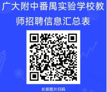 1.在文末掃碼下載并填寫《廣大附中番禺實驗學校教師應聘信息登記表》(附件1)。上交資料:(1)教師應聘登記表;(2)本人自薦書(親筆書寫);(3)身份證(正反面復印在同一頁);(4)教師資格證;(5)普通話證書;(6)學歷學位證;(7)就業(yè)推薦表(僅應屆生提供);(8)學業(yè)成績單(僅應屆生提供);(9)各種獲獎榮譽證明材料;(10)專業(yè)技術資格證(已取得相應專業(yè)技術資格的老師提供)。以上資料按順序命名,放入同一個文件夾內打包,將文件夾以“學段+學科+姓名+畢業(yè)院校+專業(yè)”命名(如:小學語文+張三+XX大學+漢語言文學),發(fā)送到郵箱gfpszp@163.com。