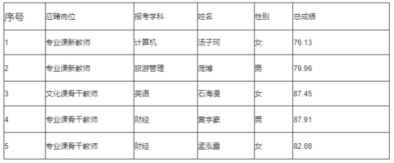 根據(jù)《南京商業(yè)學(xué)校2024年5月公開招聘教師公告》經(jīng)報(bào)名、資格初審、筆試、資格復(fù)審和面試,根據(jù)招聘崗位計(jì)劃1:1,按總成績由高到低,現(xiàn)將體檢考察人員名單公示如下,體檢具體要求:1、體檢時(shí)間地點(diǎn):2024年6月26日上午,地點(diǎn):中大醫(yī)院。;2、體檢前注意事項(xiàng):應(yīng)聘新教師崗位人員,體檢時(shí)攜帶空白的就業(yè)協(xié)議,如高校就業(yè)實(shí)行網(wǎng)簽,請?jiān)诟咝>W(wǎng)簽平臺輸入本人自然信息,顯示未就業(yè)頁面信息截圖打印后交學(xué)校老師。3、未進(jìn)入體檢考察人選可以聯(lián)系招聘學(xué)校取回就業(yè)推薦表原件。