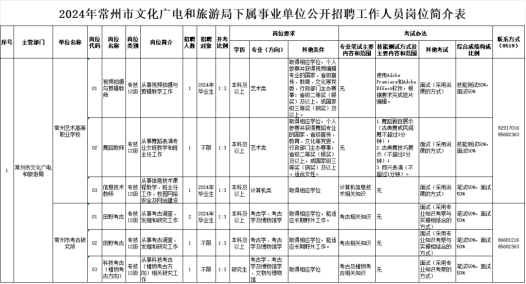 附件:2024年常州市文化廣電和旅游局下屬事業(yè)單位公開招聘工作人員崗位簡介表
