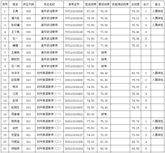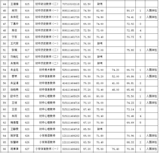 揚(yáng)中市教育局所屬學(xué)校2024年公開招聘教師、校醫(yī)總成績(三)
