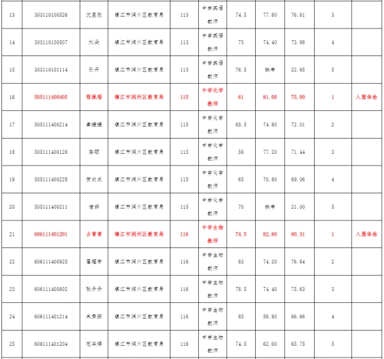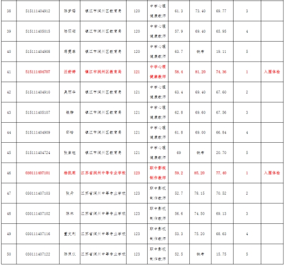 根據(jù)《2024年鎮(zhèn)江市潤州區(qū)教育系統(tǒng)公開招聘教師公告》規(guī)定,現(xiàn)將2024年潤州區(qū)教師招聘總成績(第三批)公告如下,表中紅色字體標注人員為入圍體檢、考察人選。公告時間為7月1日至7月3日,公告結束后將組織入圍考生進行體檢、考察,具體時間和地點另行通知。咨詢電話:潤州區(qū)教育局 0511-85589160;監(jiān)督電話:潤州區(qū)教育局0511-85589112區(qū)人社局0511-81988369區(qū)紀委監(jiān)委0511-12388。