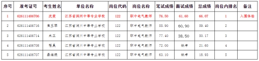 根據(jù)《2024年鎮(zhèn)江市潤(rùn)州區(qū)教育系統(tǒng)公開招聘教師公告》規(guī)定,現(xiàn)將2024年潤(rùn)州區(qū)教師招聘總成績(jī)(第四批)公告如下,表中紅色字體標(biāo)注人員為入圍體檢、考察人選。公告時(shí)間為7月8日至7月10日,公告結(jié)束后將組織入圍考生進(jìn)行體檢、考察,具體時(shí)間和地點(diǎn)另行通知。咨詢電話:潤(rùn)州區(qū)教育局 0511-85589160;監(jiān)督電話:潤(rùn)州區(qū)教育局0511-85589112區(qū)人社局0511-81988369區(qū)紀(jì)委監(jiān)委0511-12388。