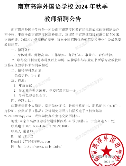 歡迎加入南京教師招聘群;707513309,考情、招聘信息早知道!