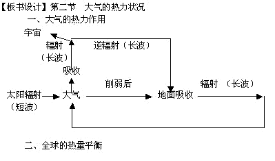 【教學(xué)手段】錄像片《大氣對(duì)太陽(yáng)輻射的削弱和保溫作用》,《溫室效應(yīng)的產(chǎn)生》;Powerpoint課件