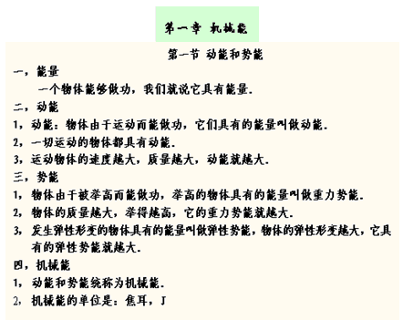 從板圖上,學(xué)生應(yīng)當(dāng)能夠總結(jié)出“物體由于運(yùn)動(dòng)具有的能量稱為動(dòng)能”.