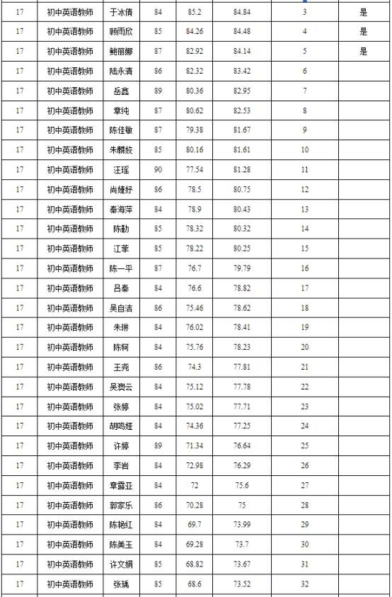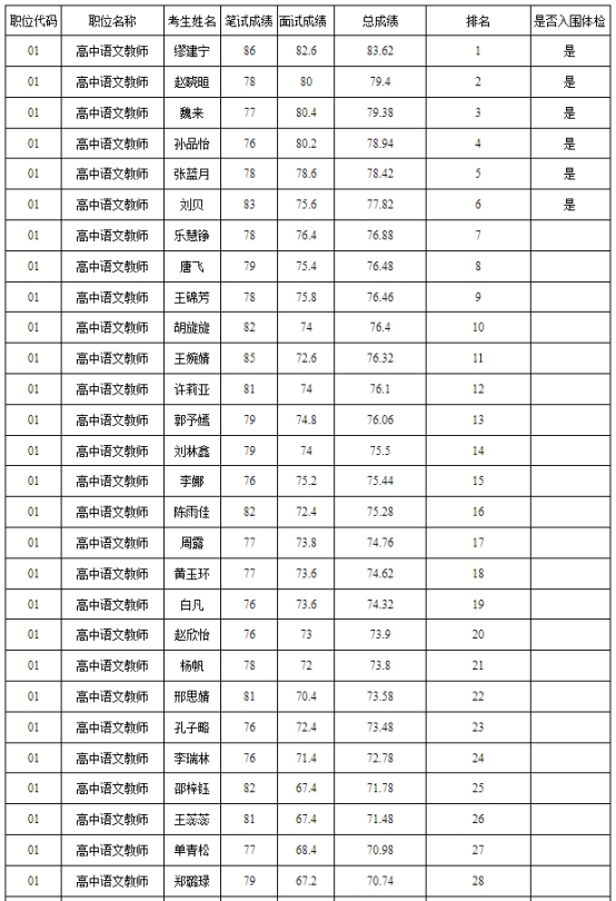根據(jù)《鎮(zhèn)江市直教育系統(tǒng)2024年教師招聘公告》(鎮(zhèn)人社事招備案〔2024〕12號(hào)),現(xiàn)將鎮(zhèn)江市直教育系統(tǒng)2024年教師招聘總成績(jī)及入圍體檢人員予以公告。如有異議,請(qǐng)于公告期內(nèi)聯(lián)系鎮(zhèn)江市教育局人事處。