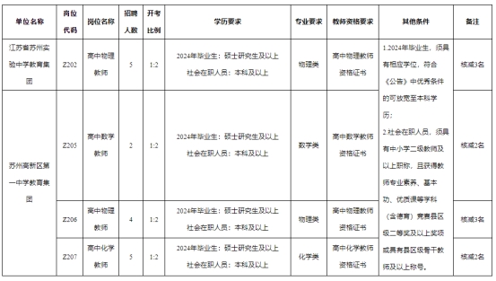 2024年蘇州高新區(qū)公開補充招聘教師學校審核工作已結(jié)束,根據(jù)招聘公告規(guī)定,經(jīng)研究決定對下列因達不到開考比例的招聘崗位進行核減,具體公告如下: