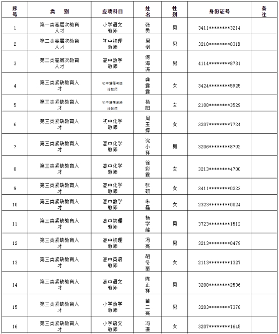 根據(jù)《2024年蘇州高新區(qū)教育系統(tǒng)公開招聘事業(yè)編制高層次、緊缺型教育人才公告》要求,經(jīng)過報名、考試、體檢和政審,擬錄用張勇等同志,現(xiàn)公示如下: