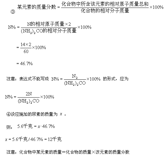 、芤鼓侈r(nóng)田增加5.64千克的氮元素,問應(yīng)向這塊地施加尿素多少千克?