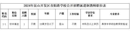 附件1:2024年昆山開發(fā)區(qū)青陽港學(xué)校公開招聘派遣制教師職位表