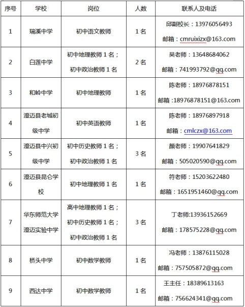 根據(jù)澄邁縣各中小學(xué)實際情況需要,現(xiàn)面向社會公開招聘以下人員派至澄邁縣各中小學(xué),現(xiàn)公布招聘公告如下: